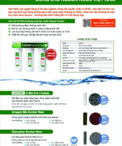 - Máy lọc nước Geyser Ecotar 4 thừa hưởng những ưu điểm công nghệ từ các phiên bản trước là lõi lọc Aragon bio, Disruptor New và nâng cấp khả năng lọc từ lõi BS và làm mềm lên lõi lọc Ecotar B 5 in 1.